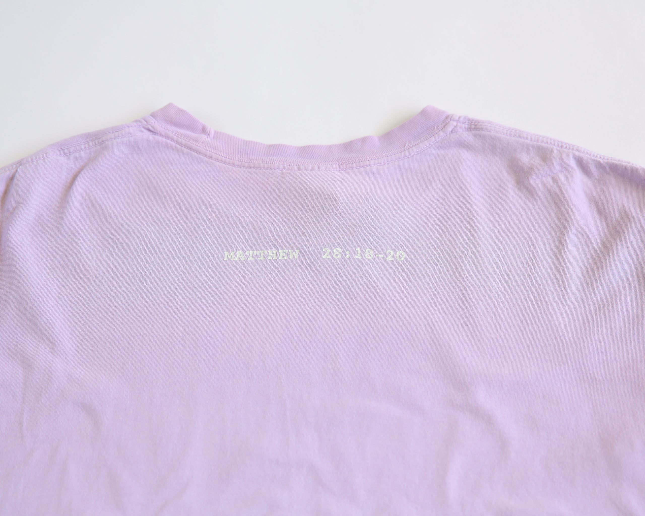 Matthew 28:18-20 says, “And Jesus came and said to them, “All authority in heaven and on earth has been given to me. Go therefore and make disciples of all nations, baptizing them in the name of the Father and of the Son and of the Holy Spirit, teaching them to observe all that I have commanded you. And behold, I am with you always, to the end of the age.” It is an honor to serve and love others the way that Jesus loves us. This is a mindset that is accessible to each of us every morning that we wake up. Let this shirt serve as a reminder to love others as a reflection of who Jesus is within you, as he promises to be with us to the end of the age.